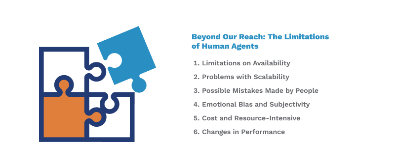 • Adaptability and Flexibility: Human agents are naturally flexible and can easily handle tasks or situations that come up out of the blue. They can pick up on subtleties in language, read body language, and change the way they talk to each customer to fit their needs. This flexibility lets exchanges be more tailored to each person and work better.